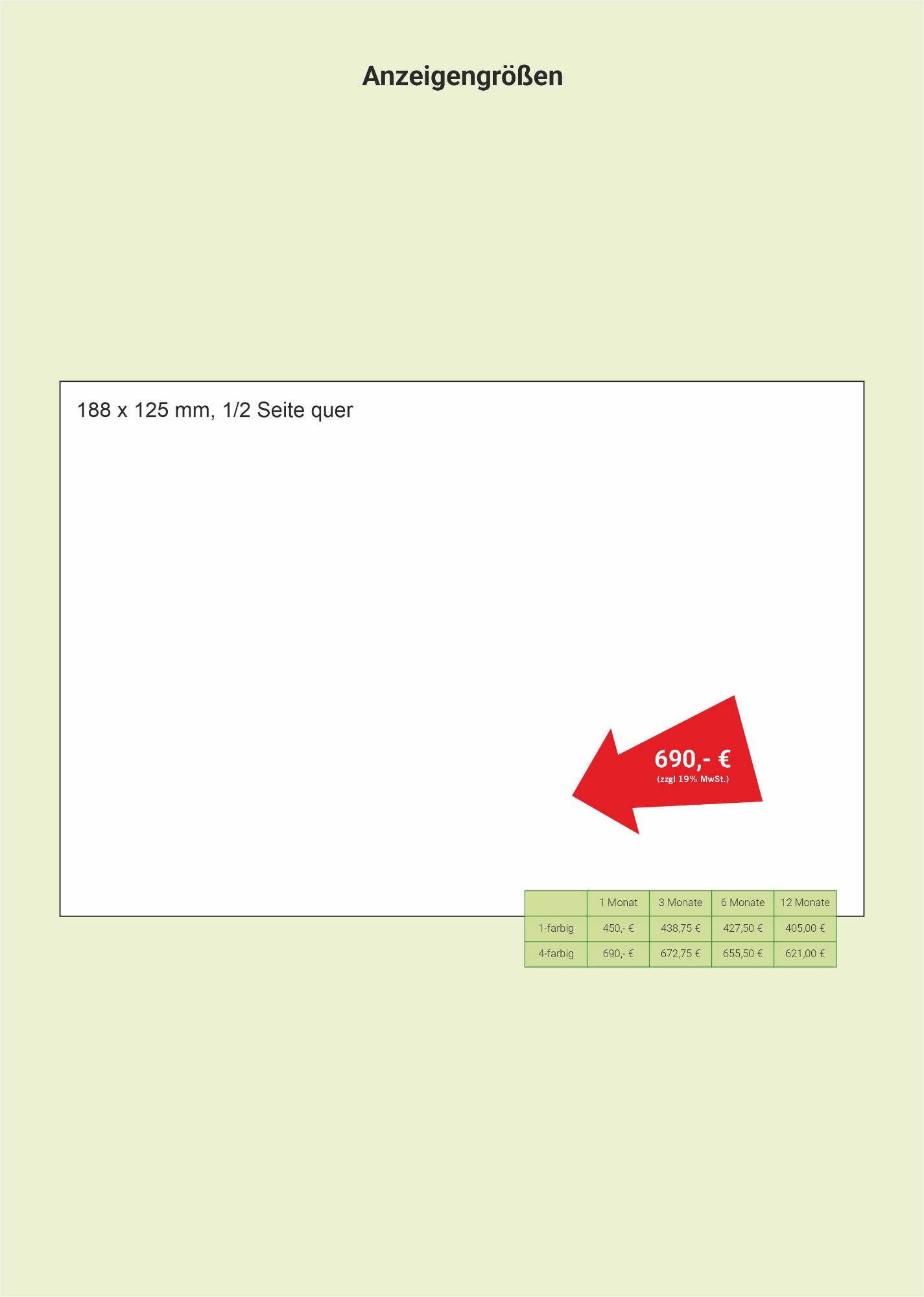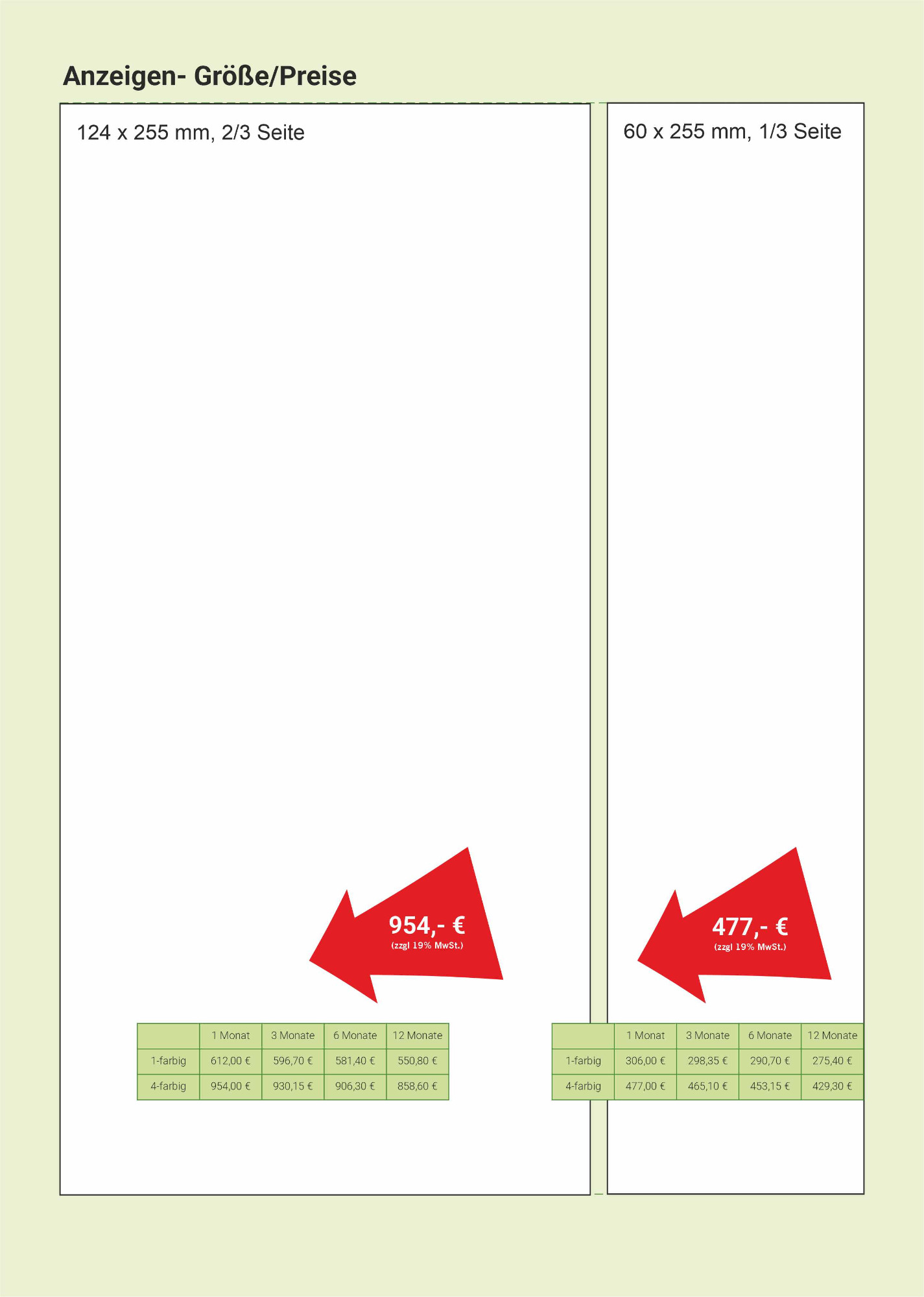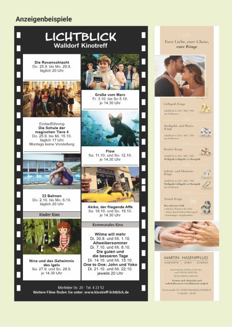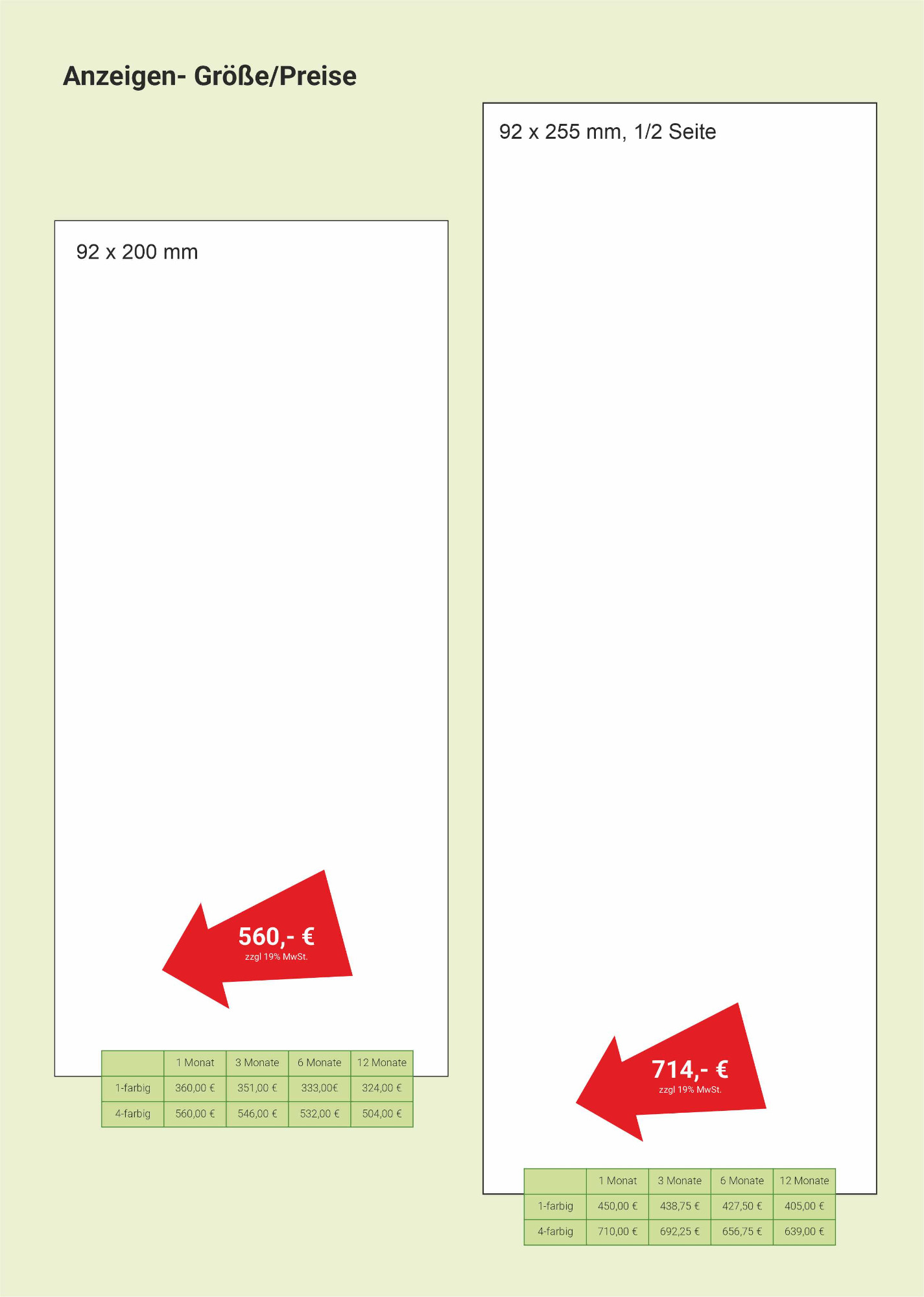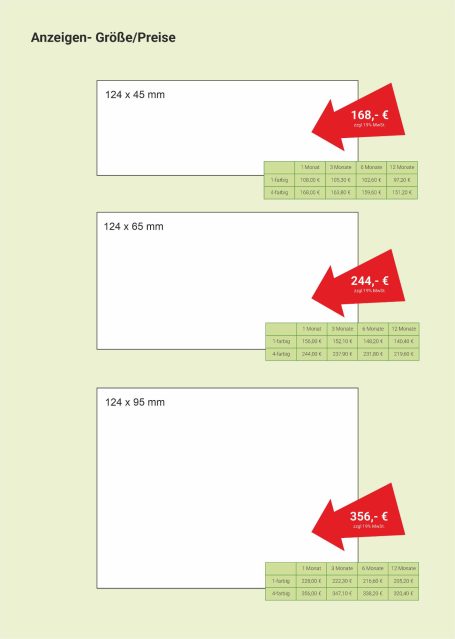Wählen Sie ihr Format nach Design oder Budget. Bei der Anzeigengestaltung unterstützen wir Sie gerne.