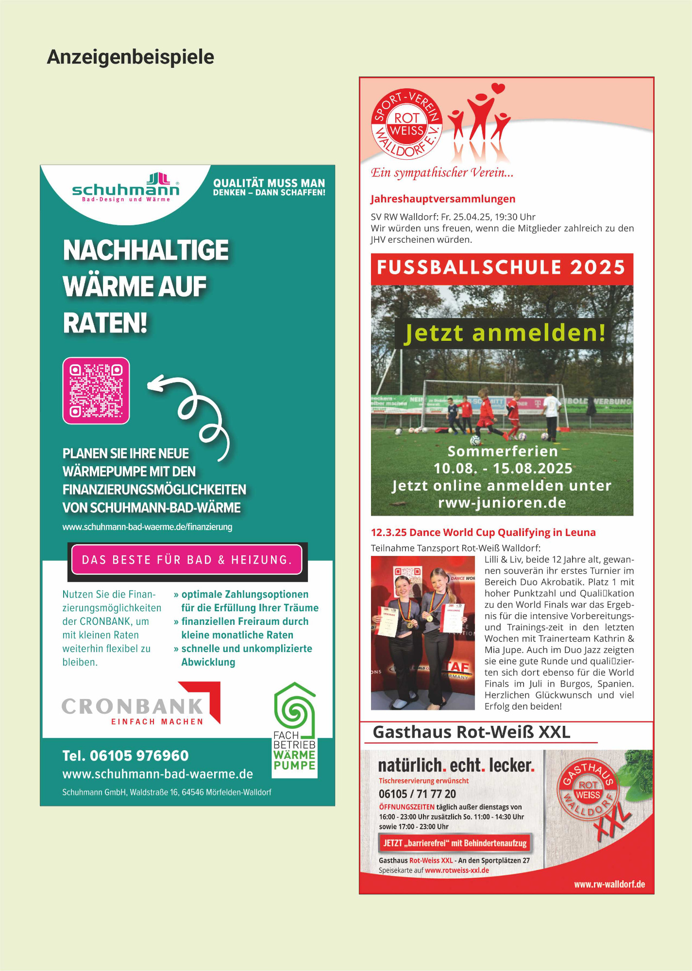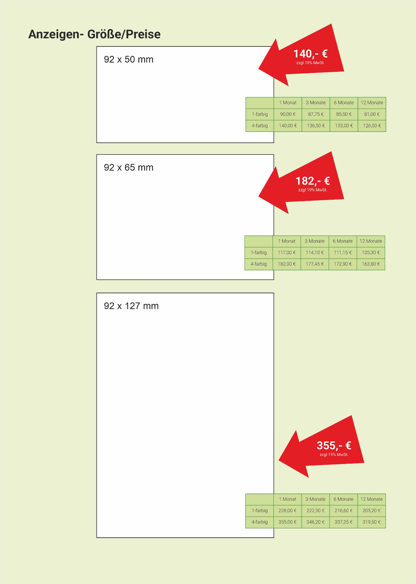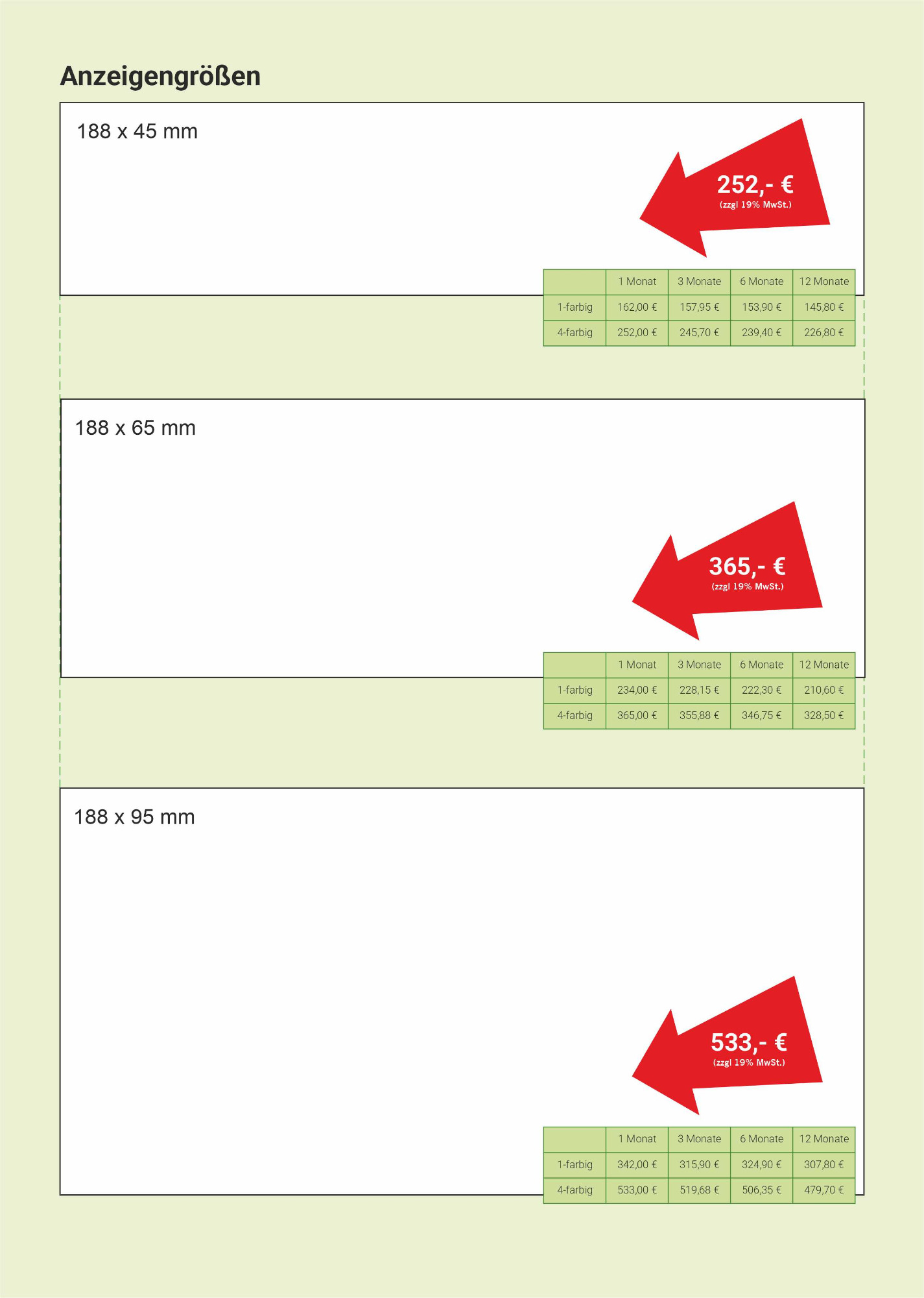 Wählen Sie ihr Format nach Design oder Budget. Bei der Anzeigengestaltung unterstützen wir Sie gerne.