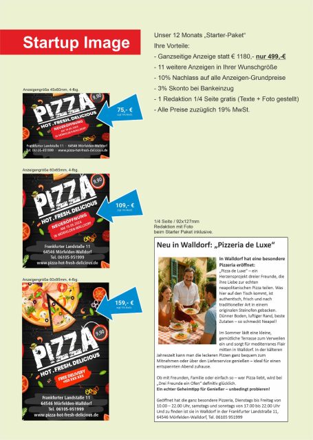 (Größere Werbekampagnen ausgenommen; Layout mit max. drei Korrekturen, Bilder ggf. gegen Aufpreis)